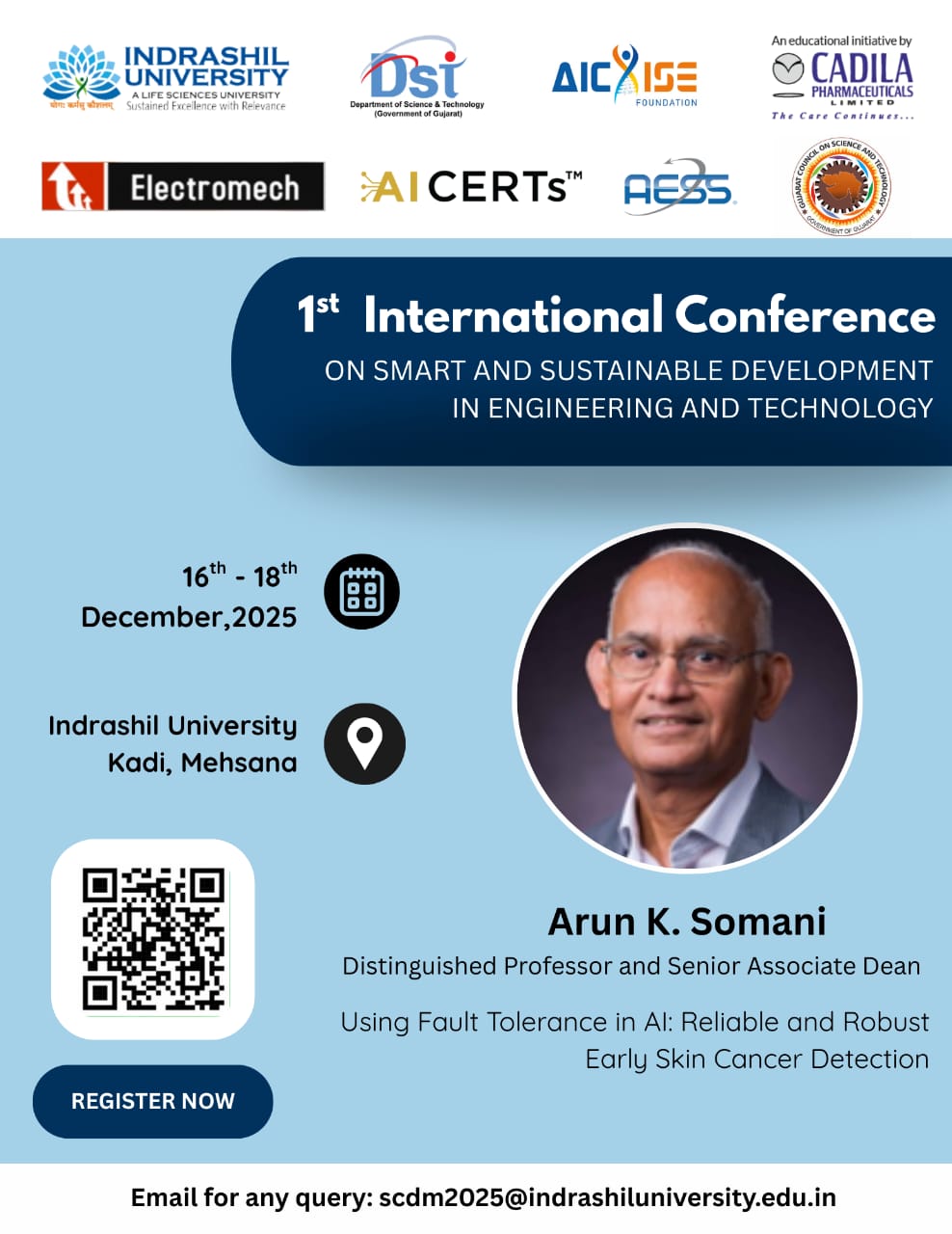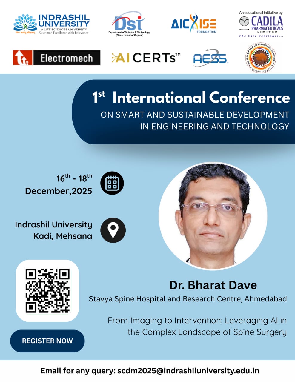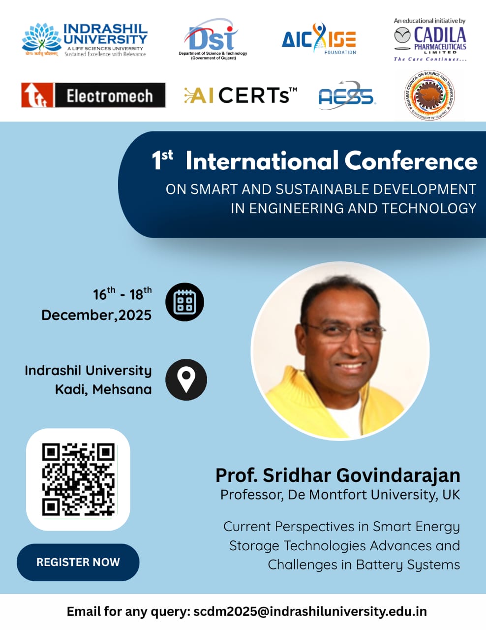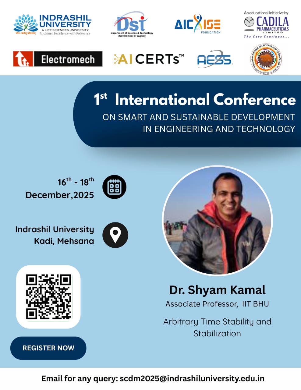The International Conference on Smart and Sustainable Development in Engineering and Technology, organized by Indrashil University, aims to bring together global experts, industry leaders, academicians, and researchers to explore innovations that drive sustainable growth across diverse fields of science and technology.